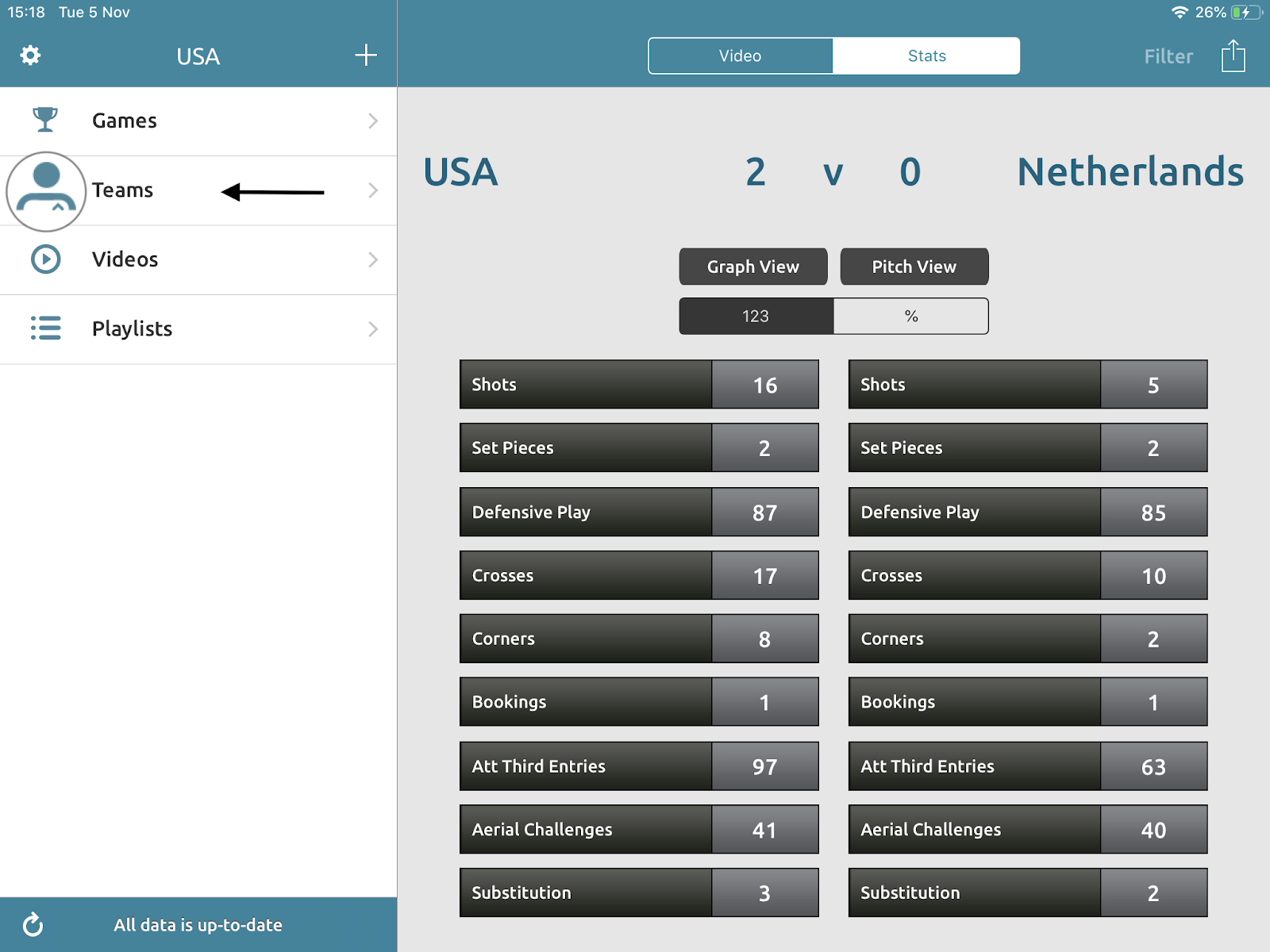 Step 1: After completion of a game, return to the main dashboard and select Teams.