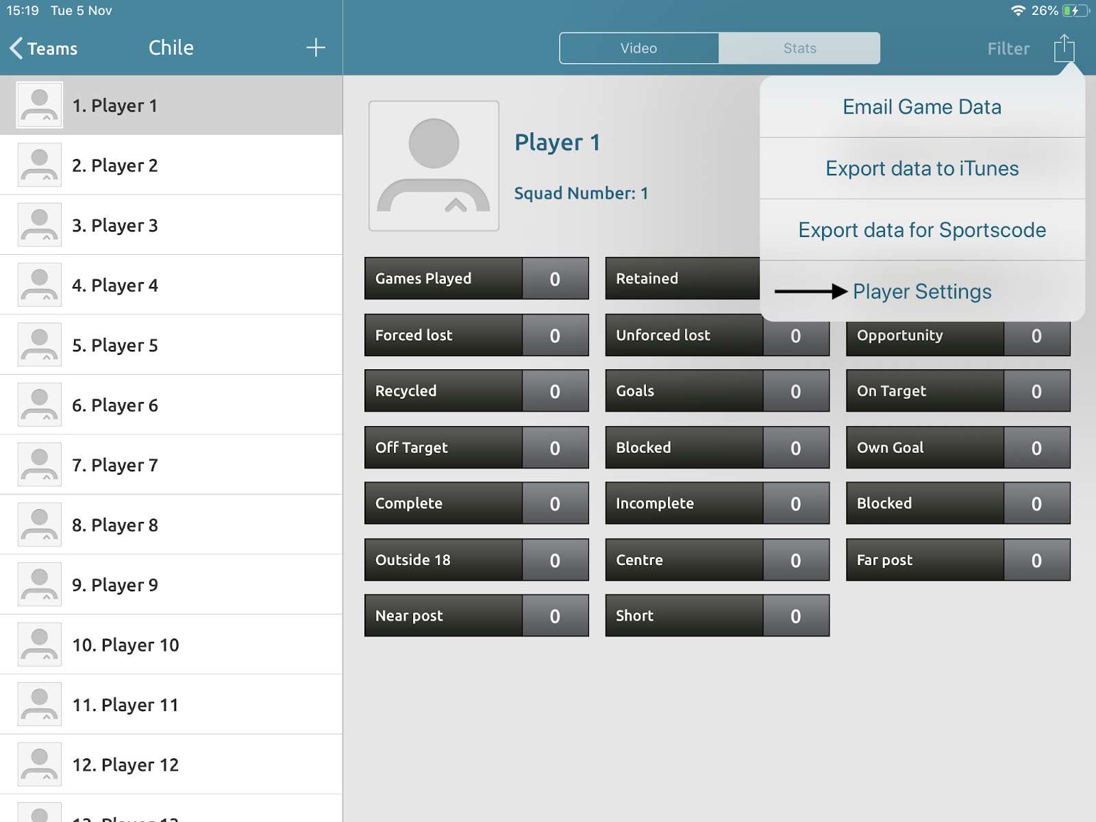 Step 4: From the drop-down list that is presented by selecting the action button, select Player Settings.